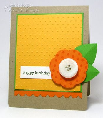 Here's the original card. It was posted on my personal blog earlier this week. I had a lot of fun piecing together my own flower with die-cuts, instead of stamping and cutting out a floral image.